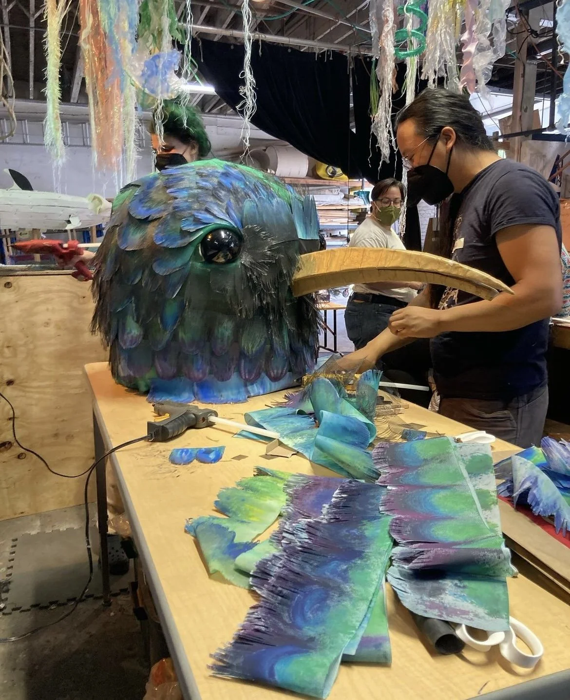 Full Moon Mutual Aid Workshopis a 10 week intensive to teach community artists large puppet construction. A puppet is designed by 6 Lead Artists, staff and a teaching artist for a partner organization, and built by 70+ community artists in open workshops.